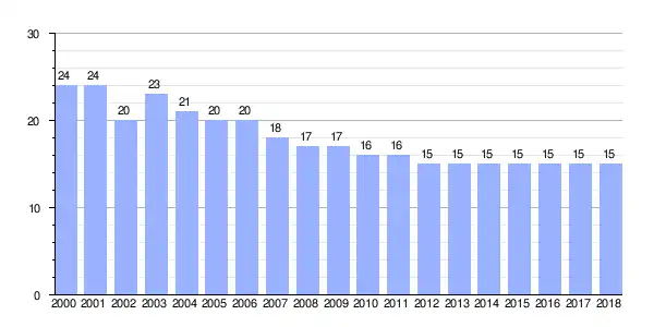 Gráfica de evolución demográfica de Fontao entre 2000 y 2018 |