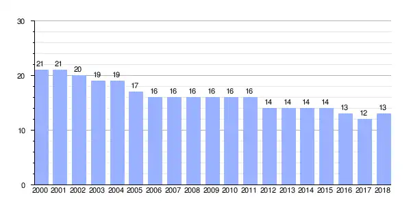 Gráfica de evolución demográfica de Fontelas entre 2000 y 2018 |