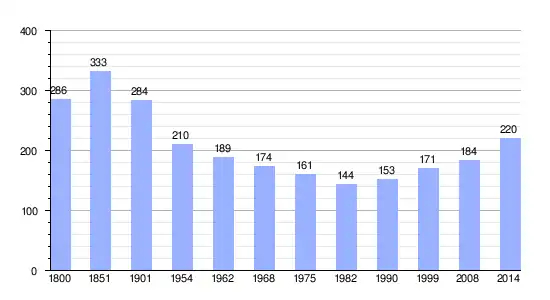 Los datos demográficos contemplados en este gráfico de la comuna de Fontenelle-en-Brie[4] se han cogido de 1800 a 1999 de la página francesa EHESS/Cassini, y los demás datos de la página del INSEE.[5]
