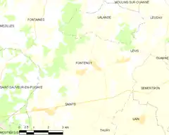 - Situación de Fontenoy en un mapa de Francia y de comunas limítrofes (enlace roto disponible en Internet Archive; véase el historial, la primera versión y la última). (en francés)
