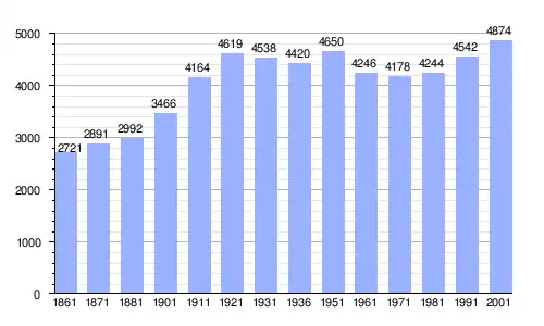 Gráfica de evolución demográfica de Fontevivo entre 1861 y 2001 |