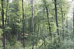 El bosque abarca un área de 12 kilómetros largo y 10 km de ancho, y está dividido por múltiples caminos forestales. Contiene más de noventa especies de árboles, sobre todo robles y hayas.