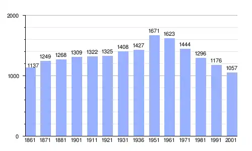 Gráfica de evolución demográfica de Fordongianus entre 1861 y 2001 |