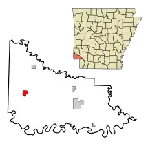 ![]() Localización en el condado de Little River y en el estado de Arkansas | ||