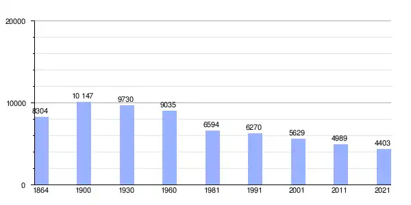 Gráfica de evolución demográfica de Fornos de Algodres entre 1864 y 2021 |
