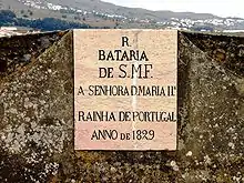 - baluarte da Boa Nova, de dieciseistroneras. En su ángulo saliente existen dos almacenes, coronados por el llamado Torreão da Bandeira, donde se levanta el mástil de la bandera. El frente de este baluarte pasó a conocerse como batería de D. Pedro IV, durante las Guerras Liberales, según la inscripción existente en una lápida de mármol. El tramo de muralla que continúa estaba equipado con seis piezas, siendo rebautizado como Batería de D. Maria II. En el extremo sur se sitúa la batería de Malaca. Desde esa batería, cruzando sobre la Puerta de Armas desciende una escalera a un antiguo jardín, desde el que se llega al