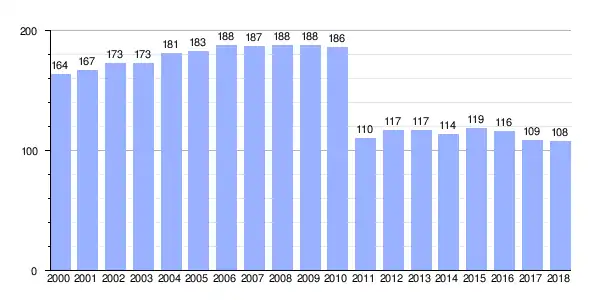 Gráfica de evolución demográfica de Forte entre 2000 y 2018 |