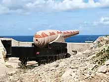 Tras el armado de los acorazados italianos Duilioy Dandolo con cañones de 100 toneladas, los británicos temían un ataque italiano a Malta, ya que los barcos podían disparar a las baterías de Malta, destruyéndolas una tras otra, mientras se mantenían fuera del alcance de sus cañones. Para evitar esto, los británicos solicitaron que se construyeran cuatro cañones de 100 toneladas. Dos de estos se instalaron en Malta, y se construyeron las baterías Cambridge y Rinella específicamente para albergar estas armas. La construcción de las baterías comenzó en 1878 y se completaron en 1886. El arma albergada en Rinella todavía existe. [41]