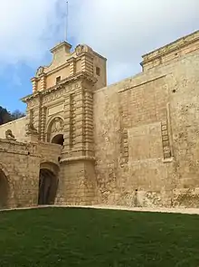 - «Main Gate – Mdina». National Inventory of the Cultural Property of the Maltese Islands. 28 de junio de 2013. Archivado desde el original el 4 de marzo de 2016.