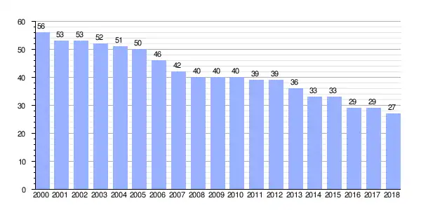 Gráfica de evolución demográfica de Forxán entre 2000 y 2018 |