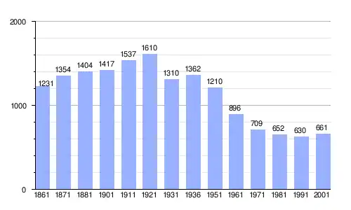 Gráfica de evolución demográfica de Fossa entre 1861 y 2001 |