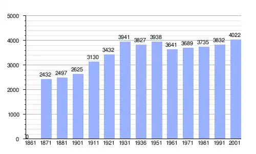 Gráfica de evolución demográfica de Fossalta di Piave entre 1861 y 2001 |