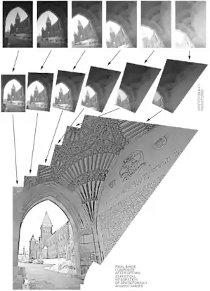 Las imágenes de rango dinámico alto utilizan imágenes expuestas de forma diferente de la misma escena para ampliar el rango dinámico.[7] Otros ejemplos incluyen el procesamiento y la fusión de imágenes iluminadas de forma diferente de la misma materia ("espacio de luces").