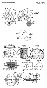 - Swiss patent CH 192864 ("Photographieapparat mit schwenkbarem, mit selbsttätiger Auslösung versehenem Objektiv, insbesondere für Brieftauben"), published 1937-12-01, issued 1937-09-15, filed 1936-02-03. Michel also obtained corresponding patents in Germany ("Panoramakamera mit schwenkbarem Objektiv, insbesondere für Brieftauben"), France ("Appareil photographique à déclenchement automatique, particulièrement pour pigeons-messagers"), Belgium ("Appareil photographique à déclenchement automatique, particulièrement pour pigeons-messagers") and the United Kingdom ("Improvements in or relating to Panoramic-cameras").