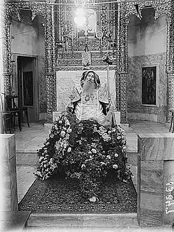En ocasiones encontramos que sobre la mesa era colocado el pequeño ataúd blanco para elevar el altar o simplemente era colocado atrás o a un lado del cuerpo, o bajo el altar pero siempre visible, predominaba la costumbre de colocar el cuerpo sobre la mesa recostado o sentado. El de los “angelitos” era el único caso en el que se permitía decorar el ataúd con tafetán doble de colores. Inmediatamente venía la colocación de flores y hierbas odoríferas, comúnmente las flores eran llevadas por los vecinos, familiares y acompañantes, se llevaban ramos en floreros, macetas y coronas o cruces de variadas flores. La importancia de las flores, dice Gutierre Aceves, es porque “la muerte florida da acceso al paraíso”. Un altar lleno de flores evoca el Paraíso o Edén, un lugar florido donde reinan la paz y el amor y que es el lugar al que aspira el alma después de la muerte.