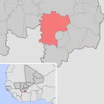 Se encuentra ubicada al sur del país, junto a la frontera con Burkina Faso y Costa de Marfil y al sureste de la capital nacional, Bamako.