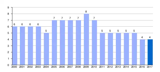 Gráfica de evolución demográfica de Frades de Santa María[3] entre 2000 y 2017 |