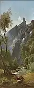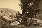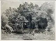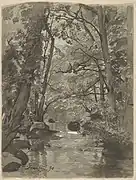 - Un ruisseau à travers une forêt dense (1884) watercolour.