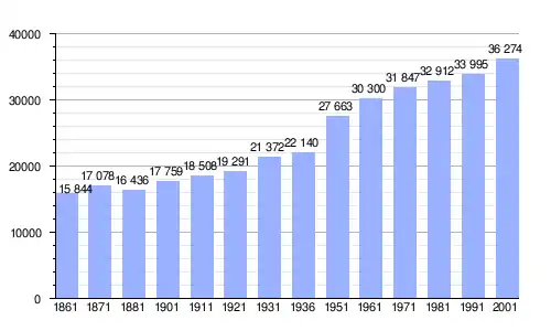 Gráfica de evolución demográfica de Francavilla Fontana entre 1861 y 2001 |