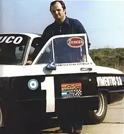 ![]() Francisco Espinosa junto a su Ford Falcon de 1980/1981. | ||
