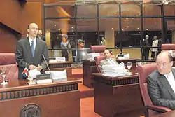 El 8 de agosto presentó formal renuncia al cargo de Procurador, para asumir la senaduría por la Provincia de Santiago.