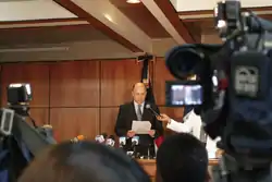 - "(...)quiero informar que en el día de hoy estoy procediendo a solicitar una licencia por tres meses sin disfrute de sueldo..., a partir del 16 de febrero del presente año a los fines de asumir la candidatura de la senaduría por la provincia de Santiago”, expresó.[6]