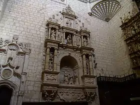 El grueso decorativo de esta capilla es obra de Francisco Giralte, discípulo aventajado de Alonso de Berruguete, que no habría podido encargarse de este proyecto personalmente. La primera pieza que conforma este conjunto escultórico es la puerta de entrada a la propia capilla. Realizada en madera de nogal, su decoración plateresca combina escenas sacras en casetones con figuras profanas, así como grutescos y decoración a candelieri, motivos característicos de esta etapa. Esta puerta es ya en sí misma, prueba evidente de la destreza escultórica de Giralte.