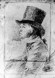 Si se compara con el dibujo preparatorio que se encuentra en el Metropolitan Museum se aprecian pequeños cambios que han contribuido a endurecer el retrato: párpados caídos, pupila del ojo empequeñecida, los labios más serios, desaparece la manga del brazo por lo que parece una capa o levita, desaparece también una pequeña melena que se disimula con un intenso sombreado del fondo, pero que aún se aprecia en el grabado definitivo. Así mismo con el aguatinta se cambian las luces y sombras: tanto la cara como el corbatín quedan ahora blancos como puntos de luz, mientras que el levitón y el fondo reciben dos tonos diferentes de aguatinta que destacan mucho más los puntos de luz señalados.[6]