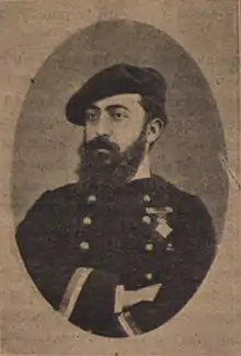 Estallada la Tercera Guerra Carlista, en 1873 dejó de lado su carrera periodística para combatir en el bando de Don Carlos. Después de servir algunos meses en el batallón de Radica (2.º de Navarra), fue destinado a las órdenes del General Antonio Lizárraga, a quien acompañó como Ayudante de Campo durante todo el resto de la campaña, tanto en el Norte como en Cataluña, Aragón y el Maestrazgo. Fue ascendido a comandante y obtuvo condecoraciones militares, distinguiéndose principalmente en los combates de Somorrostro y en el sitio de la plaza de Seo de Urgel.[5]