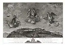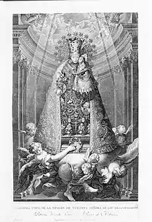 Cronológicamente, la última estampa que se le conoce: la imagen de Nuestra Señora de Belén, va fechada en Porta Coeli en 1827. Abierta por dibujo del cordobés Diego Monroy y Aguilera, fue encargo del infante Carlos María Isidro, hermano de Fernando VII, y su esposa con motivo de una visita al Desierto de Nuestra Señora de Belén en la sierra cordobesa, como consta por la leyenda que figura al pie de la estampa, en la que se explica el contenido de la misma: «Imagen de la Santísima y milagrosa Patrona de la Congregación de Hermitaños Anacoretos de la Sierra de Cordova / con la perspectiva meridional del Santo monte donde estos habitan / grabada a devoción y espensas de los Serenísimos Señores Infantes de España / Dn Carlos María Isidro de Borbón, y Dª María Francisca de Asís de Braganza y Borbón».[12]