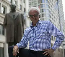 ![]() Francisco Martín Moreno frente a la estatua del expresidente de México Benito Juárez | ||