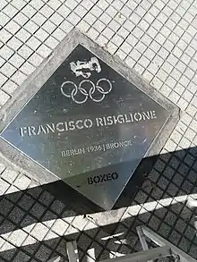 Placa homenaje a Resiglione en el Paseo de los Olímpicos de Rosario.