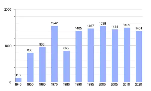 Gráfica de evolución demográfica de Francisco Rueda entre 1940 y 2020 |