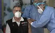 El 8 de febrero, en el primer día del proceso de vacunación, a horas de la noche, el mandatario se vacunó contra la COVID-19, convirtiéndose así en unas de las primeras personas inmunizadas junto con el personal médico del país.[67] Previo a eso, brindó un balance del proceso y cómo se estaba llevando a cabo.[68]