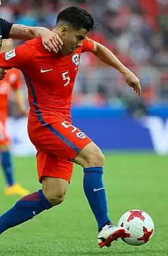 Después de esto, comenzaron las Clasificatorias a Rusia 2018 contra Brasil en el Estadio Nacional, duelo en el que nuevamente jugó como stopper por derecha pero solo jugó 40 minutos siendo sustituido por Mark González por decisión técnica, duelo en el que Chile ganó 2-0 y volvió a derrotar a la "Scratch" después de 15 años.[37] En la segunda fecha ingresó al minuto 53 por Marcelo Díaz en la victoria 4-3 frente a Perú en Lima consiguiendo 6 puntos en las 2 primeras fechas. En la tercera fecha jugó los 90 minutos (siendo reemplazado por Bryan Rabello al minuto 90) en la igualdad 1-1 con Colombia en Santiago, después fue suplente en la derrota 3-0 contra Uruguay en Montevideo. En la quinta fecha contra Argentina de local, ingresó al minuto 6 debido a la lesión de Matías Fernández, jugando un buen partido como volante defensivo en la derrota 1-2 contra los argentinos, luego en el siguiente duelo contra Venezuela en Barinas jugó los noventa minutos en el triunfo 4-1 sobre los venezolanos.