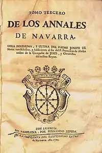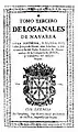 - Portada del tomo III de los Anales en la que figuran Neira y Ezquerro como "Impressores del Reyno de Navarra"