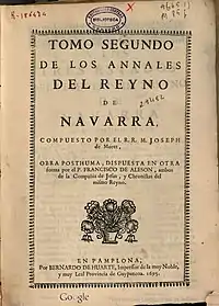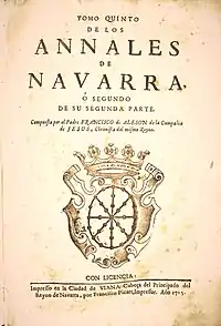 - Tomo quinto de los Anales: Dedicatoria de Alesón al "Ilustrissimo Reyno de Navarra"
