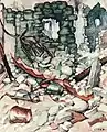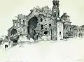 Tras el estallido de la guerra civil española Francisco de Cidón recorre el paisaje de la devastación de la guerra, realizando una colección de dibujos de pueblos y ciudades de Aragón arrasados.[9] La exposición del Casino Mercantil de Zaragoza de 1942 mostró entre otras obras algunos de éstos dibujos.[4]
