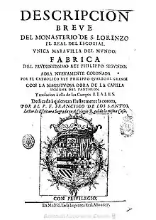 - Descripción breve del monasterio de S. Lorenzo el Real del Escorial, En Madrid, en la Imprenta Real, año 1657.
