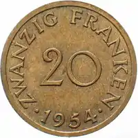 20 Franken | 1954 | Bronce de aluminio | Circular | ![]() |