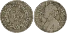 En los años 1897 y 1922 se han emitido monedas con las denominacions de cincuenta céntimos y un franco, ambas en cuproníquel.