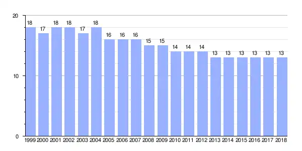 Gráfica de evolución demográfica de Francos entre 1999 y 2018 |