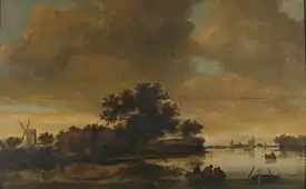 - Paisaje fluvial con barcas y un molino en la orilla, ficha en la Galería online del Museo del Prado.
