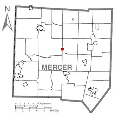 ![]() Ubicación en el condado de Mercer ![]() Ubicación del condado en Pensilvania ![]() Ubicación de Pensilvania en EE. UU. | ||