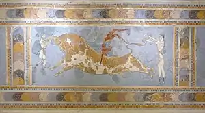 El Fresco de los boxeadores de Akrotiri, descubierto en 1967, es un fresco que muestra a dos niños que llevan guantes de boxeo y cinturones, realizado durante la Edad del Bronce, hacia 1700-1650 a.C. Entre 1639 y 1550 a.C., un desastroso terremoto, seguido por una fuerte erupción volcánica, cubrió la ciudad de Acrotiri con una gruesa capa de piedra pómez y ceniza, lo que resultó en la notable conservación de los frescos que adornaban múltiples edificios, incluyendo el Fresco de los boxeadores. Este fresco en particular fue descubierto en la habitación B1 del edificio Beta junto con el Fresco de los antílopes.[1] Las cabezas rasuradas dejando algunos mechones largos indican la juventud de los chiquillos, mientras su tono de piel rojizo indica su género.[2] El chico de la derecha está completamente desnudo excepto un cinturón, mientras que el chico a la izquierda porta joyas: pendientes de oro, collar, brazaletes y una tobillera todos de cuentas azules; un probable marcador de un estatus superior. Las figuras tienen una altura ligeramente superior al natural, con 1,75 m. Para crear tales frescos vibrantes, se aplicaba un suave enlucido a las paredes sobre el que después se pintaba. Es inseguro si se trata de una competición o simplemente entrenamiento.