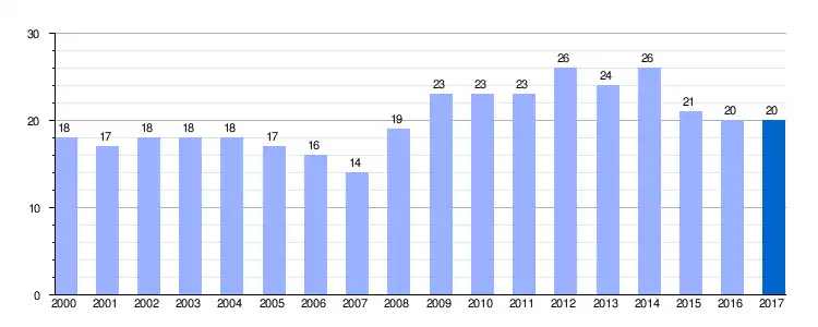 Gráfica de evolución demográfica de Fresno de Losa entre 2000 y 2017 |