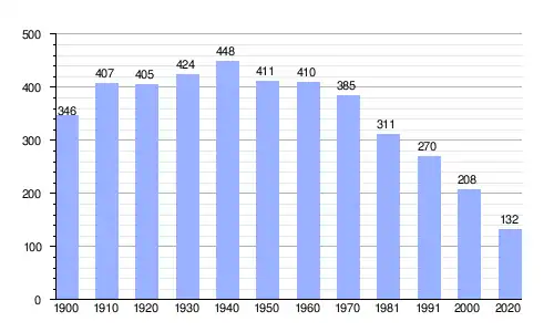 Gráfica de evolución demográfica de Fresno de la Polvorosa entre 1900 y 2020 |