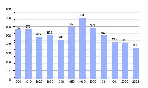 Gráfica de evolución demográfica de Fresno de la Ribera entre 1900 y 2021 |