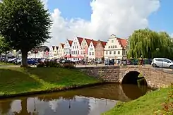 La ciudad está situada en la confluencia de los ríos Treene y Eider, a 12 km al sur de Husum, capital del distrito de Nordfriesland. Fue fundada en 1621 por colonos holandeses. El duque Federico III de Holstein-Gottorp (1597-1659) convenció a comunidades menonitas y remonstrantes para que se estableciesen en esta ciudad y recuperasen tierras marjales y pantanos de los alrededores de la misma. El holandés se convirtió en la lengua oficial. Sin embargo, en 1630, muchos arminianos habían vuelto a los Países Bajos sin que la ciudad tuviera el éxito esperado.