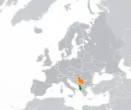![]() Localización de Albania (en verde) y Serbia (en naranja) dentro de Europa.